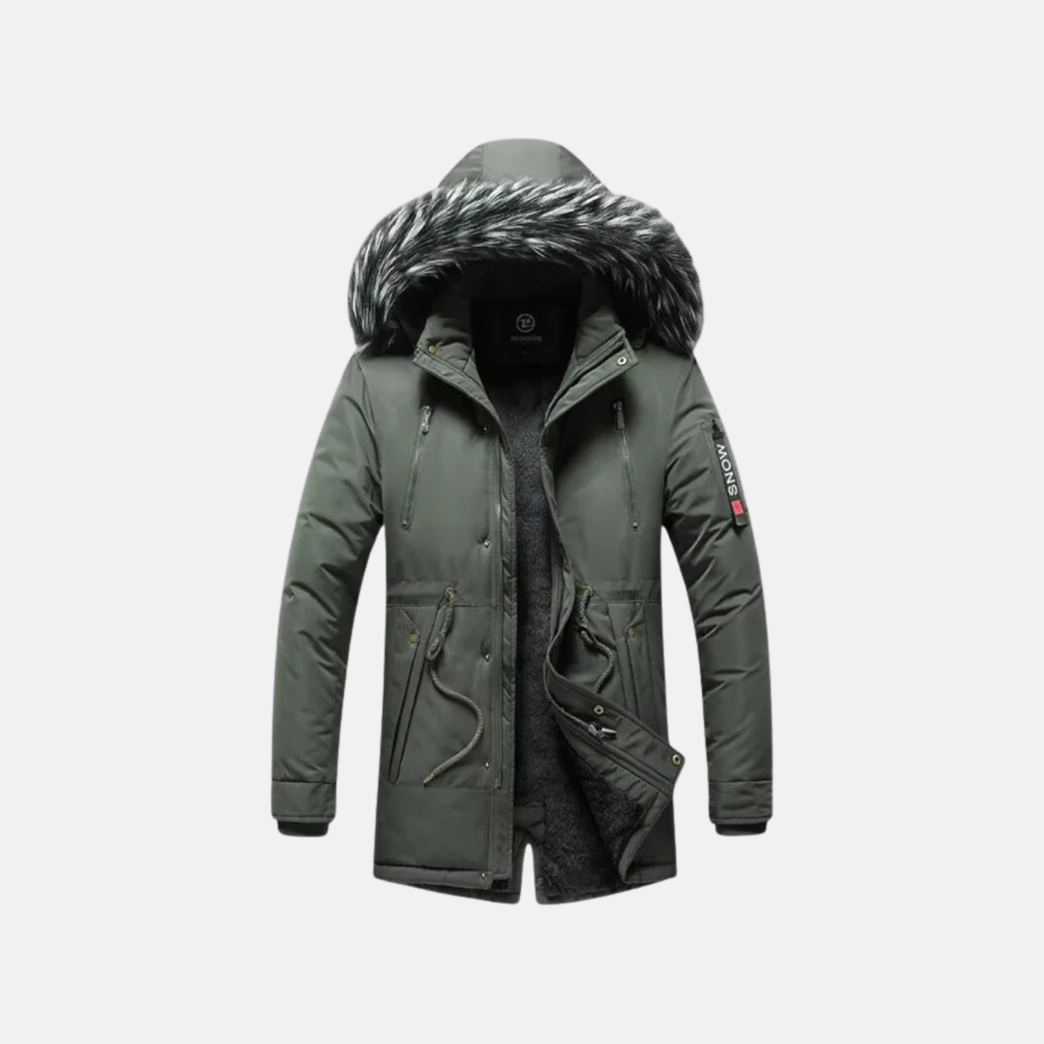 A parka designed to confidently navigate all seasons, offering warmth, practicality, and contemporary style.